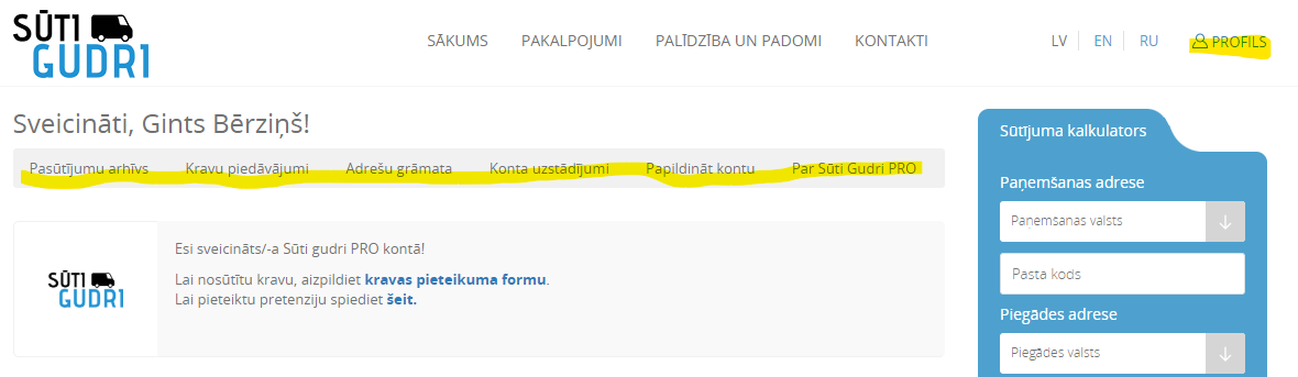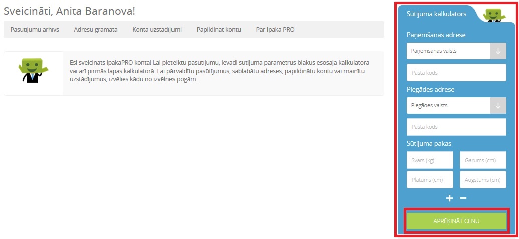 1. Чтобы сделать заказ SutiGudriPRO на правой стороне страницы есть калькулятор,в который необходимо ввести параметры Вашей посылки и нажать кнопку “РАСЧИТАТЬ ЦЕНУ”