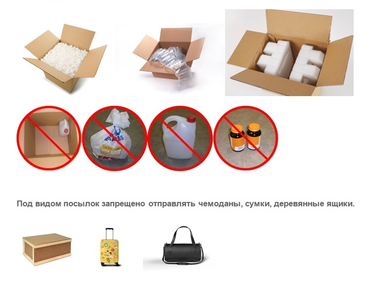 Все посылки должны быть упакованы в надежную картонную упаковку, что бы содержимое посылки не повредилось во время транспортировки и сортировки, так же содержание посылки должно быть надежно зафиксировано в коробке при помощи пупырчатой пленки, спец. Наполнителем или другим наполнителем для защиты посылки во время транспортировки. (См. фото) Если Вы отправляете жидкости, то всегда они должны быть отдельно герметично упакованы.